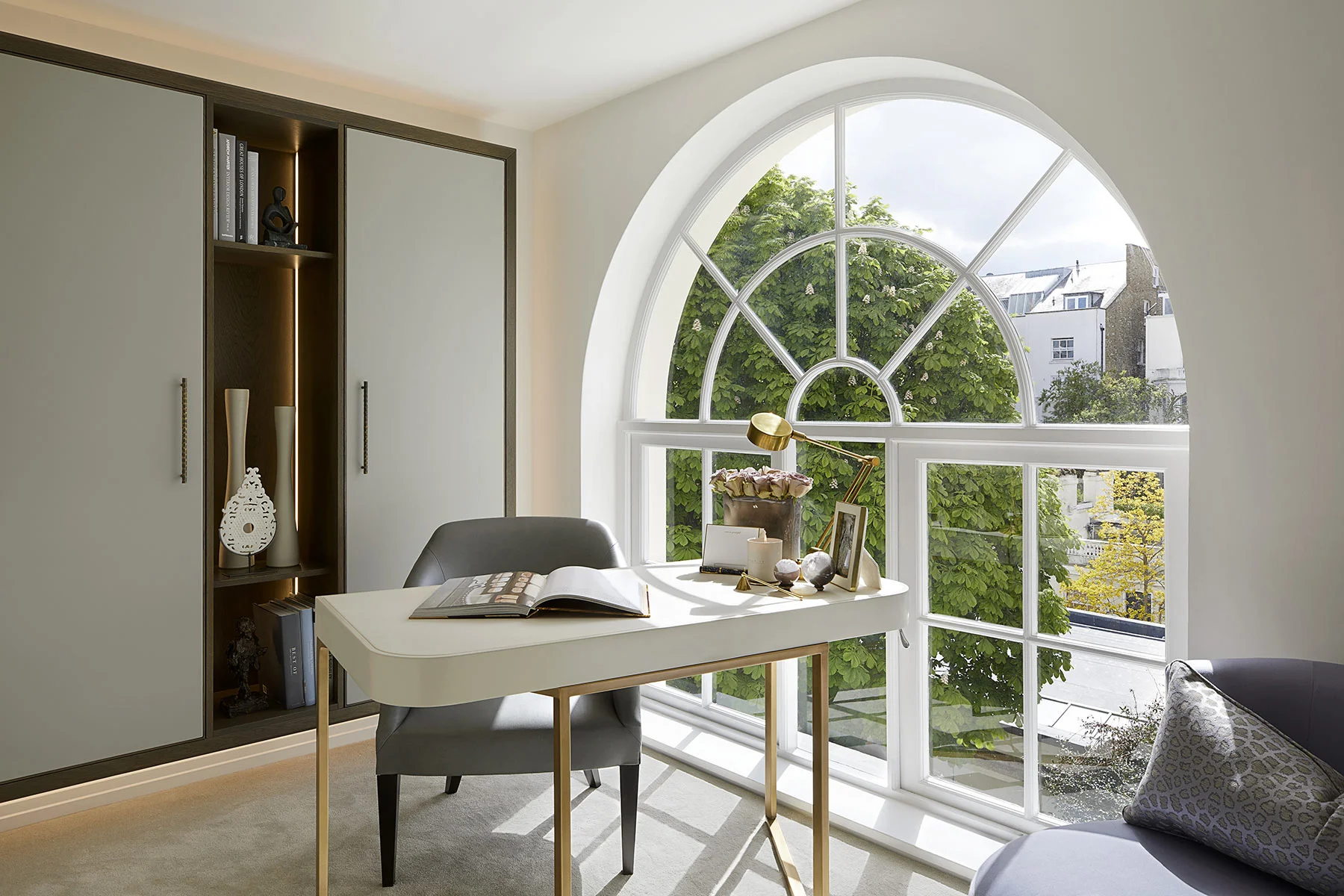 Perched within a grand Holland Park villa, this 4,400 sq ft triplex penthouse was completely reimagined for a private client. The refurbishment included full planning and listed building consent for exterior redecoration, alongside turnkey furnishing and styling, with several bespoke furniture pieces. Located moments from Holland Park, the area’s cafés, boutiques, and cultural attractions enhance the home’s refined, elegant living experience.